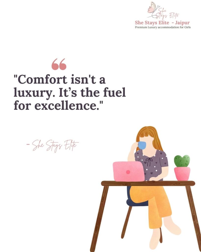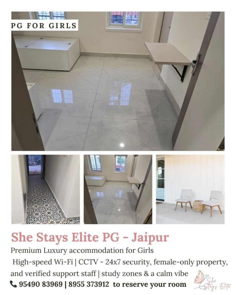 Safe. Stylish. Supportive. She Stays Elite offers fully furnished, secure, and beautifully designed PG accommodations exclusively for girls. Whether you’re a student or working professional, enjoy a peaceful, elegant space that feels like home — with zero compromises on comfort or safety.